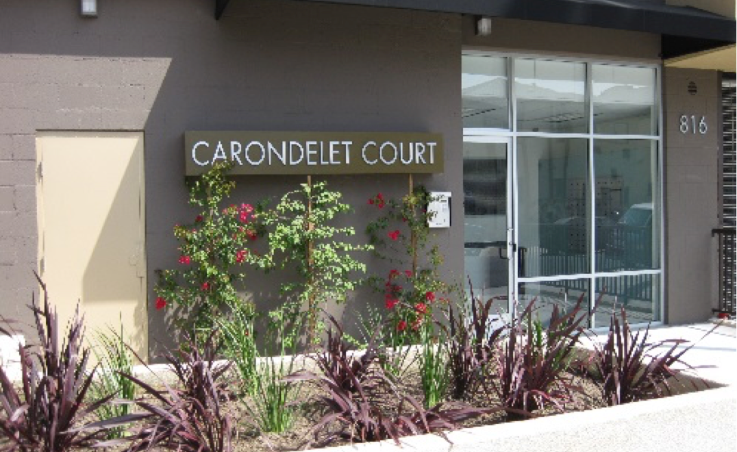 Completed in October 2008, Carondelet Court consists of 33 two and three-bedroom floor plans. The U-shaped building consists of 6-stories oriented to the south thereby maximizing sunlight. Located in the Westlake area of Los Angeles, Carondelet Court is within walking distance of MacArthur Park and a Metro Redline stop at Alvarado and 7th Street. With designs by Prantis Solares Studios, Carondolet Court features a large, fully furnished Community Room equipped with a kitchen, media center and internet ready computers. Tenants enjoy a spacious central courtyard and a rooftop terrace providing spectacular views of the city. Each of the 33 units is internet wired, and feature new appliances, expansive floor plans and views of the downtown skyline.