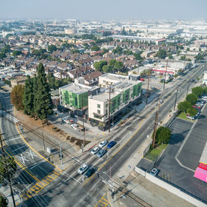 Huntington Square, sponsored by A Community Of Friends is a proposed new mixed-use apartment building which will consist of 55 units: 20 studio units, 24 one-bedroom units, 1 two-bedroom unit, 9 three-bedroom units and 1 two-bedroom manager’s unit with an additional 4,200 square feet of commercial and retail space. Huntington Square will be located on a large corner lot in Huntington Park which is in the "Gateway Cities" district of Southern Los Angeles. Huntington Park has a population of 58,000. The amenities will include a community room, courtyard, community gardens and playground.